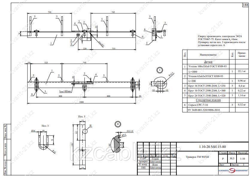 Траверса ТМ-90ИШ выпускается в соответствии с типовым проектом 1.10-20.МИ.15 (1.10-20.МИ.15-80).