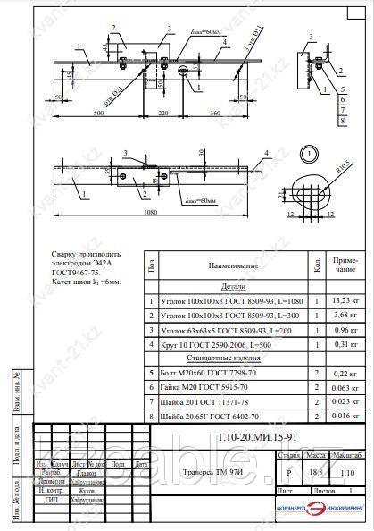 Траверса ТМ-97И выпускается в соответствии с типовым проектом 1.10-20.МИ.15 (1.10-20.МИ.15-91).