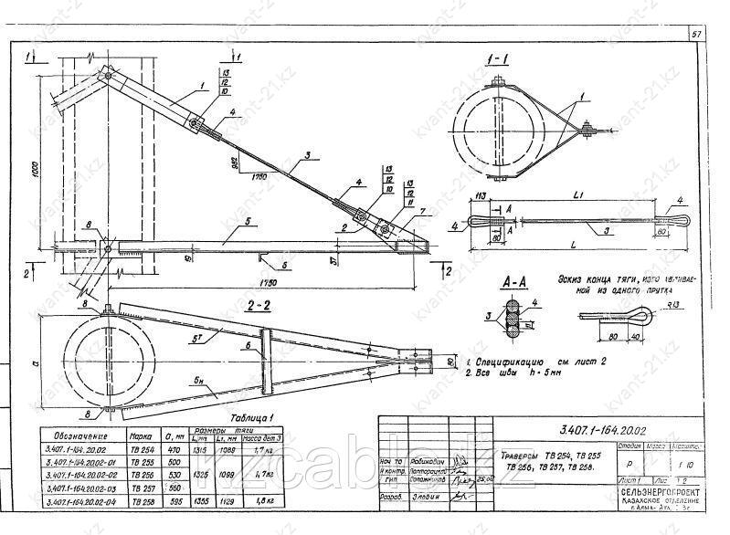 Траверса ТВ-257 выпускается в соответствии с типовым проектом 3.407.1-164 (3.407.1-164.20.02).