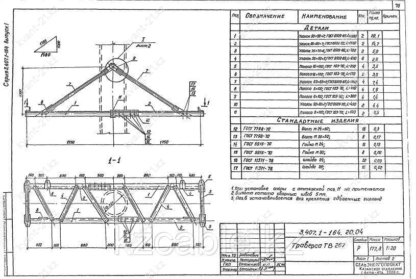 Траверса ТВ-267 выпускается в соответствии с типовым проектом 3.407.1-164 (3.407.1-164.20.04).