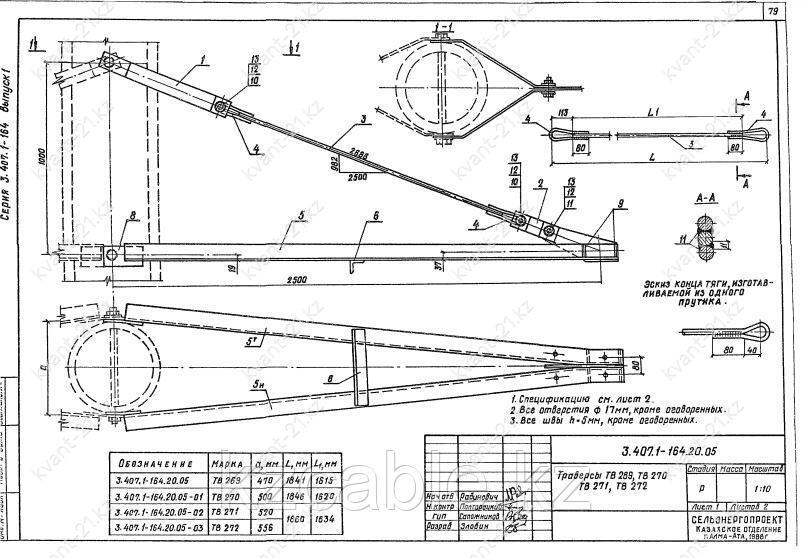 Траверса ТВ-270 выпускается в соответствии с типовым проектом 3.407.1-164 (3.407.1-164.20.05).