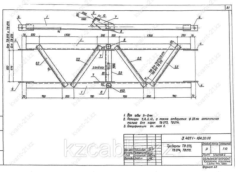 Траверса ТВ-274 выпускается в соответствии с типовым проектом 3.407.1-164 (3.407.1-164.20.06).